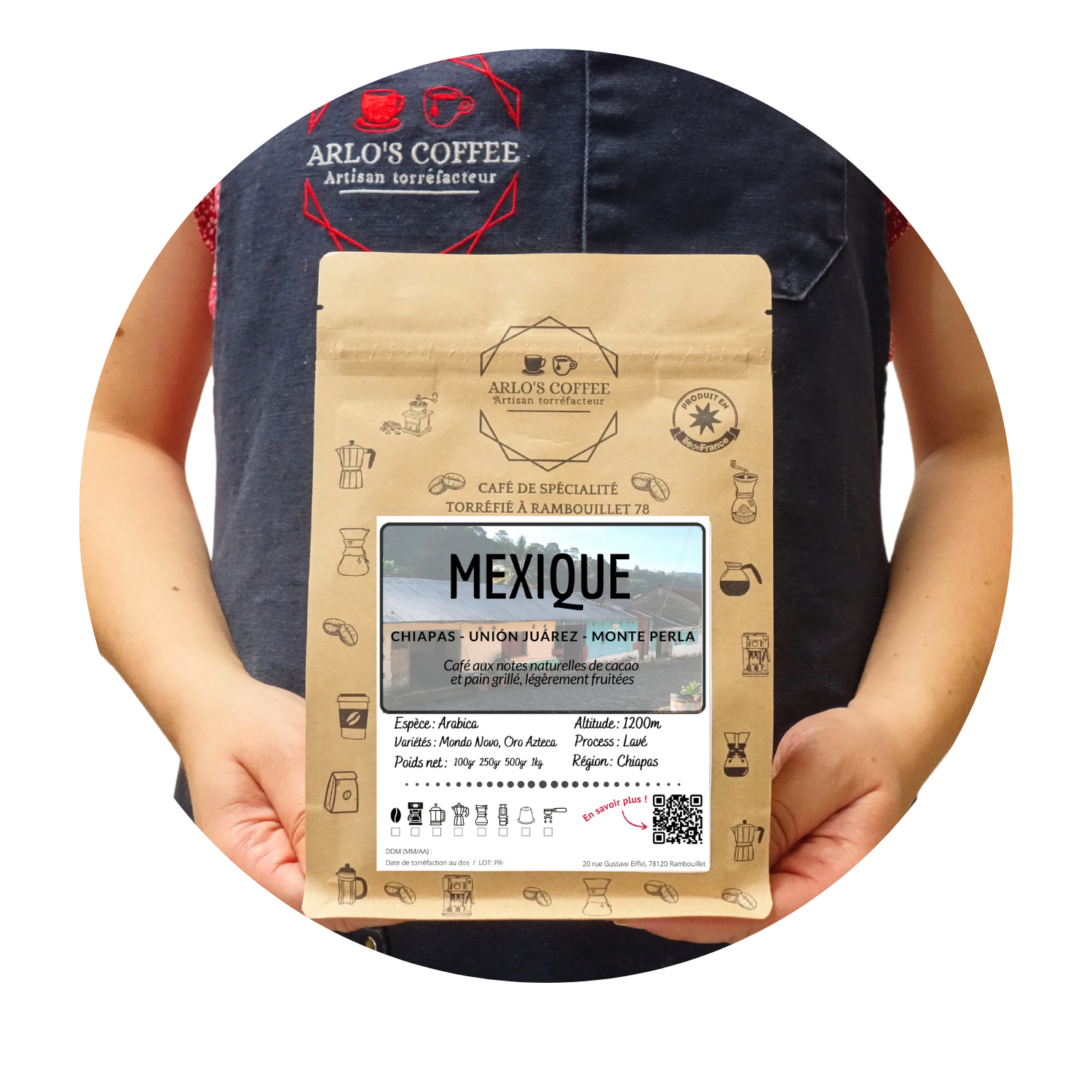 Voici Monte Perla, un café du Mexique de notre gamme éphémère. Café de spécialité aux notes naturelles de cacao et pain grillé, légèrement fruitées, pur arabica équitable, en grain & moulu, éthique et durable. Fraîchement torréfié par Arlo's Coffee, artisan à Rambouillet, dans les Yvelines.