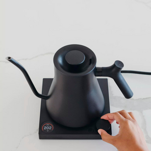 La bouilloire Stagg de la marque Fellow offre un contrôle de la température, un maintien au chaud pendant 60min et la possibilité de chronométrer la préparation. Elle offre une capacité maximum de 900 ml.