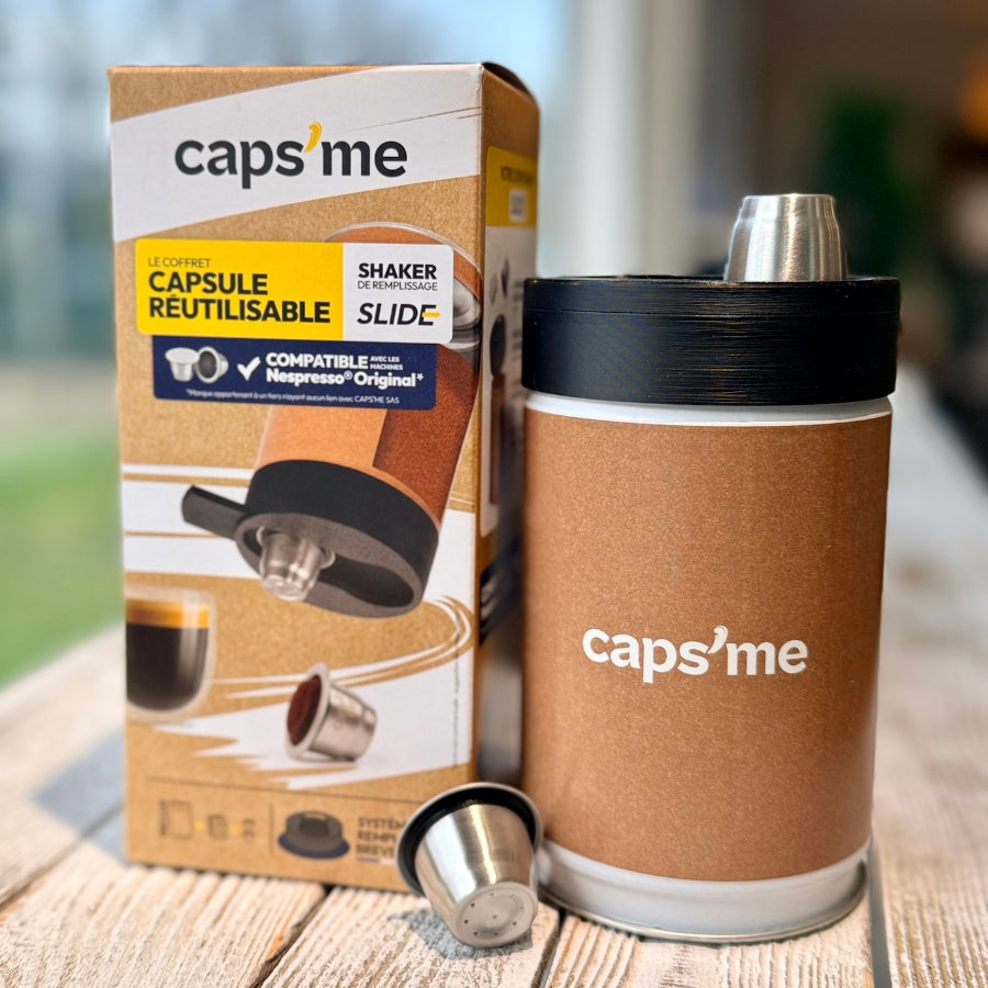 Le Coffret Shaker CAPS ME Slide est la nouvelle génération de l'outil breveté qui vous permet d'utiliser n'importe quel café moulu dans votre machine Nespresso® Original. Fini les déchets, bonjour la liberté de choix !