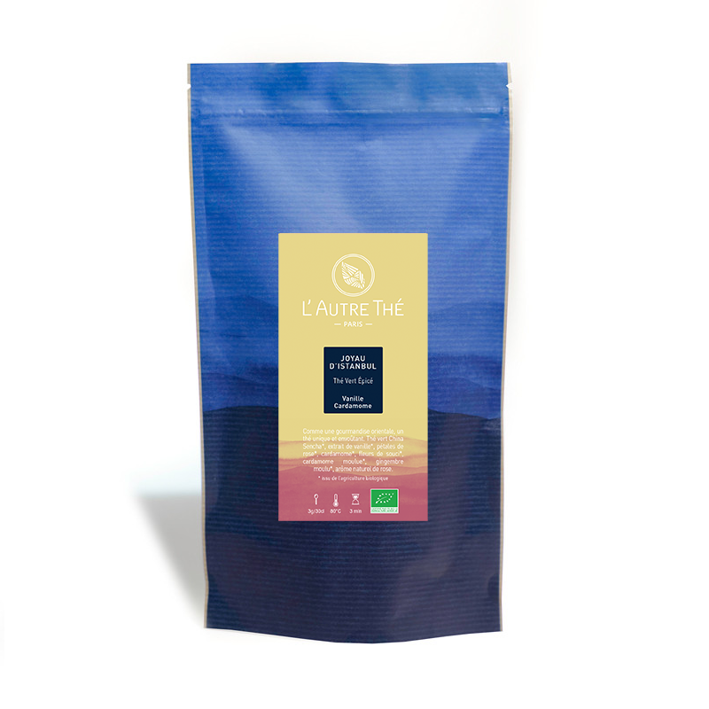 Joyau d'Istanbul (anciennement "Noël à Istanbul") est un thé vert de Chine aux arômes naturels de vanille, cardamome et rose. Il est parsemé de fleurs de souci, pétales de rose et cardamomes entières.